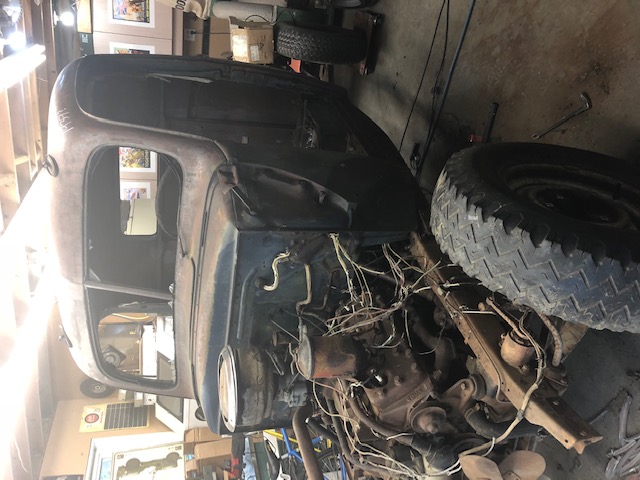 Brought the truck in and started disassembly, removed the cab and front end, down to bare frame, replaced a couple of the cross members. A great thing about these 40 trucks is the amount of parts that are avaliable, virtually every part original or reproduction can still be had. Makes a restoration relatively straight forward.