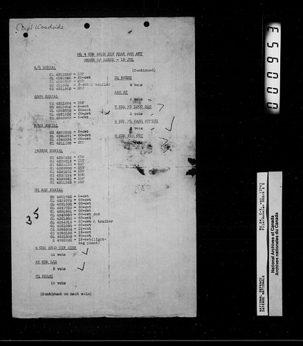 Lots to look at. The WW2 monthly Audits of bases and units within Canada was to show the vehicle SN and DND numbers and operational status. But seems these were purged from some files.