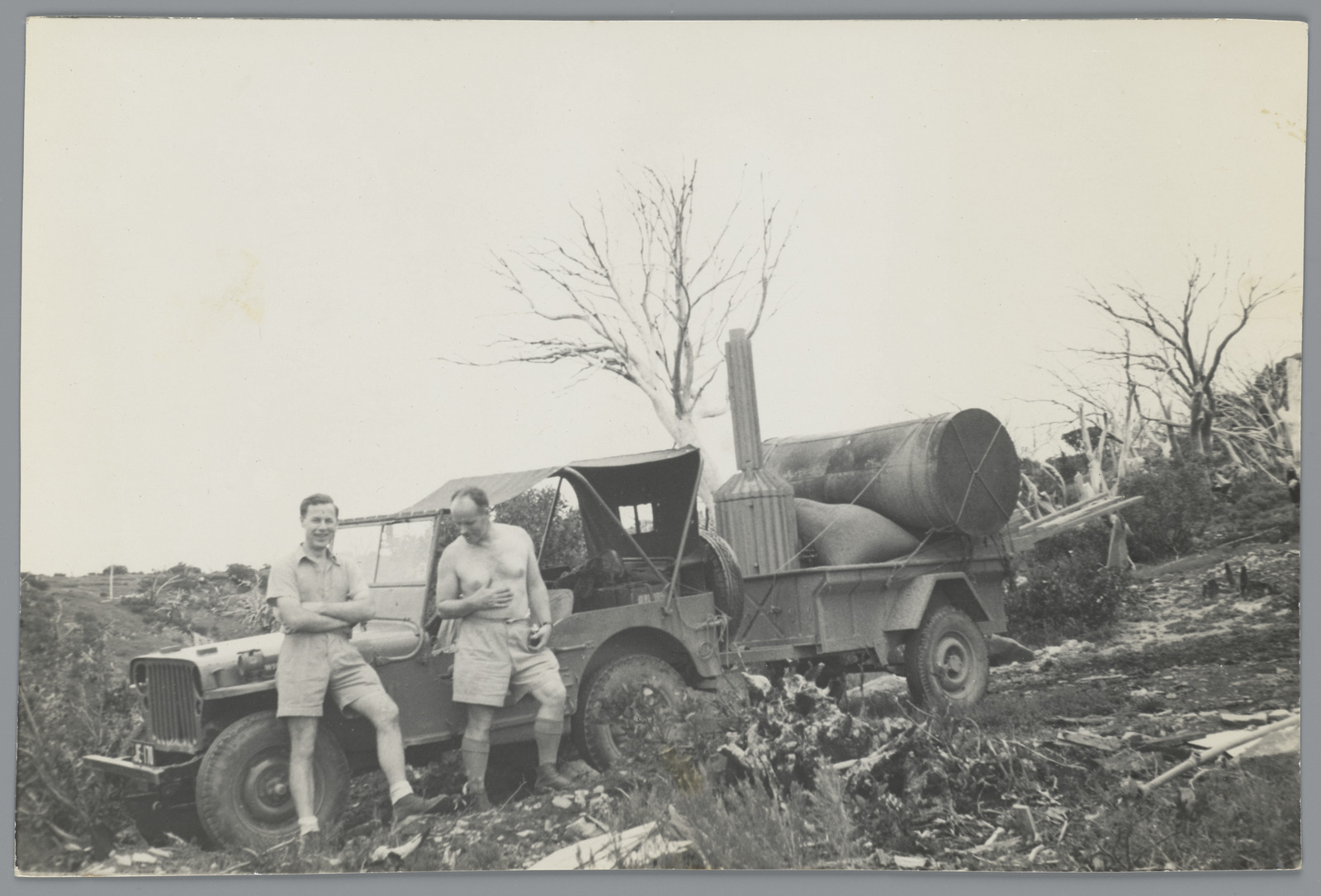 Advance parties of R.A.A.F. mobile works units were among the first to land on Noemfoor Island, in North-western New Guinea. Two days after the main body landed, R.A.A.F. Kittyhawks touched down on the captured Kamiri airstrip.