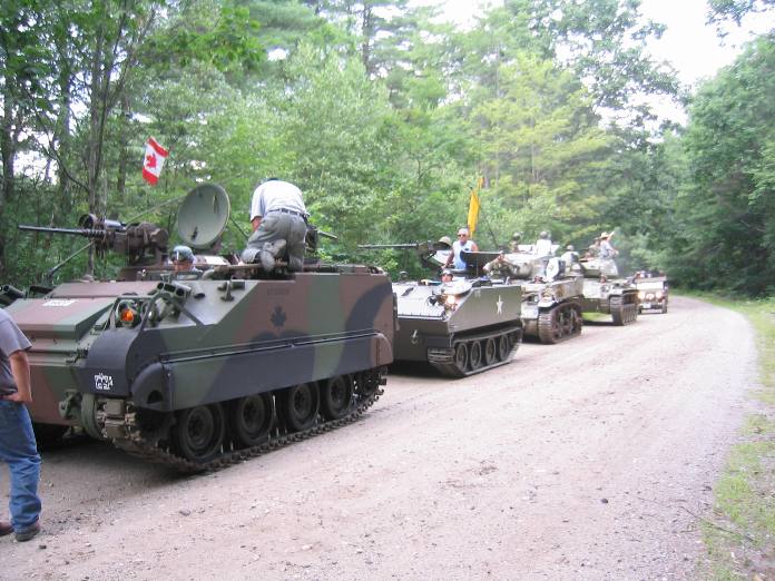 Each year at our summer rally we take a trail ride with many of the vehicles attending the show including the armor. To be sure we have no problems we always check in with the police and the Army Corps of Engineers to get approvals ahead of time. Pictures of Rally http://www.canadianmilitarypattern.c...lly%202010.htm One year there was a new officer on the force who did get the memo about the show and came rolling into the rally site to ask what was going one. He pulled on to the field with a very surprised look on his face when he saw 75-100 military vehicles and 6 or so pieces of armor including two tanks with the with their main guns trained down the road he had just driven in. (Guns elevated to be over the roofs of vehicles.) Any way we explained what the show was all about gave him copies of all the permits, including a copy of the memo from his own department. He went from looking concerned to a smile as he finally got out of his cruiser. He explained he had been flagged down by a citizen about tanks on the road, then with a grin said he was a little conflicted as to checking it out or heading in the other direction. If your curious about why permits from the Corps Engineers most of our off roading is on a flood control project that they are in charge of. We have had some big armor drive over the road to the show, most is hauled in but the Army Reserve drove a tank retriever 23 miles over the road one year to the show. Cheers Phil