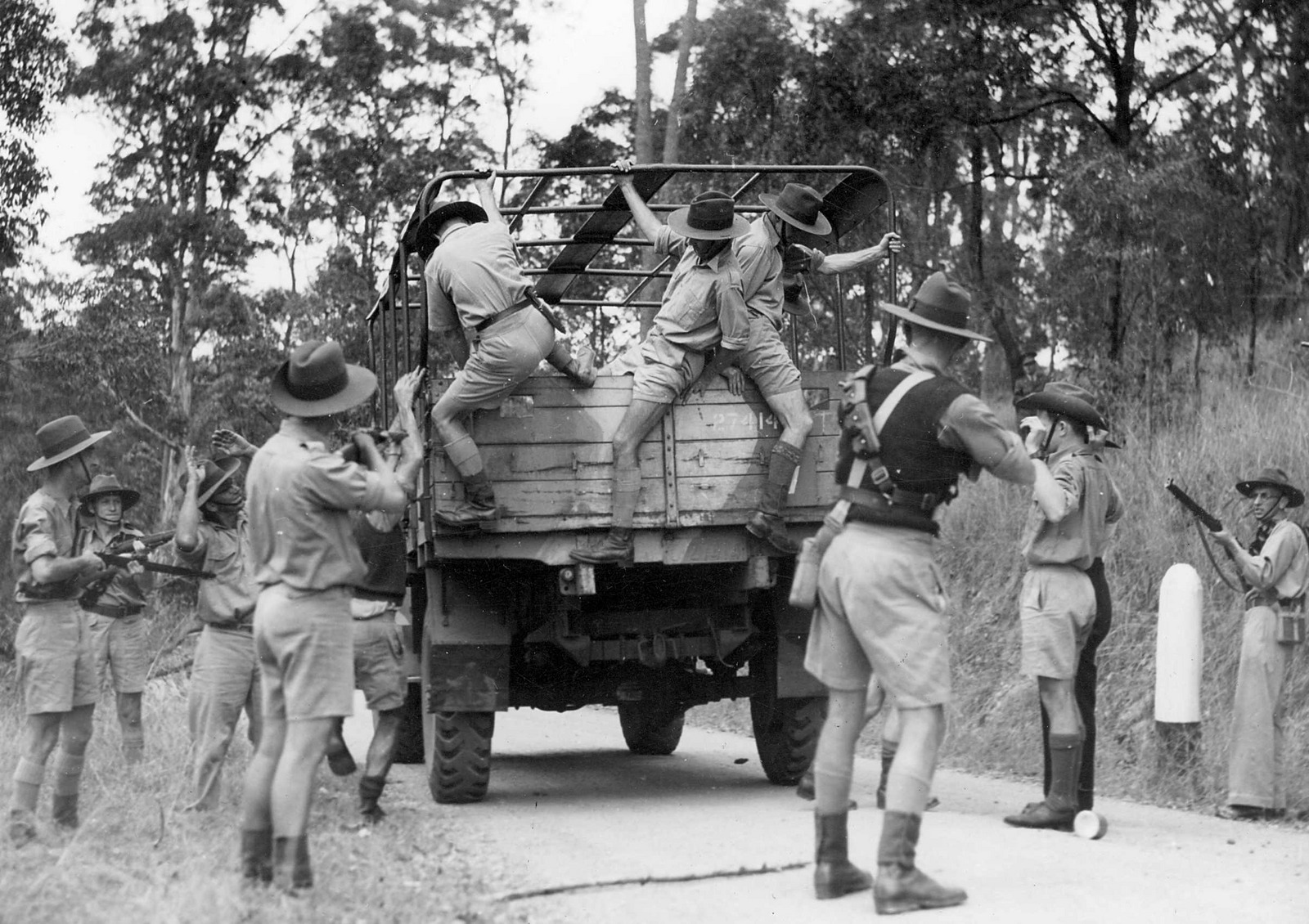 Queensland A.I.F. Camp - showing Bren carriers advancing in line