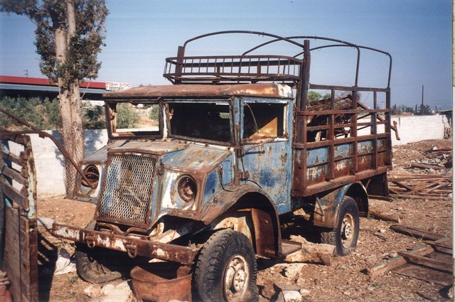 Here is an ex Greek Army HUP, which - after civilisation- heavily modified to cargo truck, resting in a crapyard. Early '90's. Unfortunately it's fate is unknown...