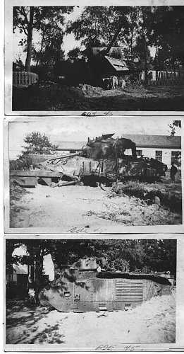 The attached photos were taken by my father when he was stationed in Ede, Holland from mid-May 1945. The only notes on the photos are "mine destroying Sherman" and "prewar French tank" (iron cross on turret).