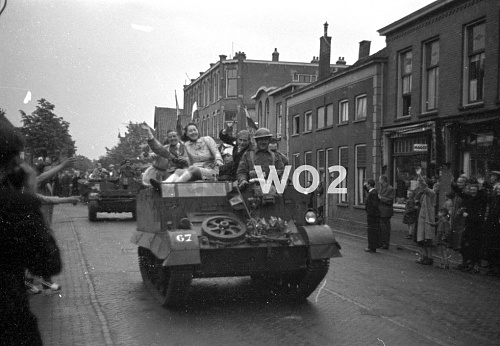That photo is a still shot taken from a National Film Board of Canada, or possibly a copy of a local newspaper photo, of an event done in Winnipeg to raise public awareness of what was happening in Europe during the war. The convoy of Carriers were loaned from a local Regiment, but I do not know which one. Winnipeg was HQ for Military District 10 at that time. I have also seen photos of these carriers in a War Bond parade on Main Street in Winnipeg at another point in time during the war. This photo was taken heading west on Portage Avenue, which intersects with Main Street in the far left corner. The large 9 story building in the centre back of the photo is the old T. Easton Company building. Torn down now and the MTS Centre Arena sits there now, home of the Winnipeg Jets. The smaller building just to the right of Eaton’s, with the lighter coloured ornate upper floors, is the Holt Renfrew Building and to the right of it, the top of the Kresge’s Building is just visible. Both those buildings still survive. David |