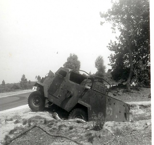 In the past a number of wrecked AFV's were strewn around on "De Vlasakkers" near the Dutch town of Amersfoort. This was the excersising grounds of the Cavalry training centre. Vehicles included were a couple of Shermans, a couple of M10 Sluggers, a Staghound command (without turret), a Chaffee and several armoured 15 CWT's.