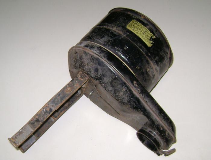 These are picture of Howards truck & the cab 12 air cleaner which has the offset unlike the 13 Cab Fords that don't. I have a NOS air filter which does not have any bolts brazed to it. Howards from the picture clearly has some bolts brazed onto the offset. Does that mean this is a modification? (sure looks like one) or is there a bracket that perhaps goes around the air filter and connects to the two rods that bolt onto the engine?