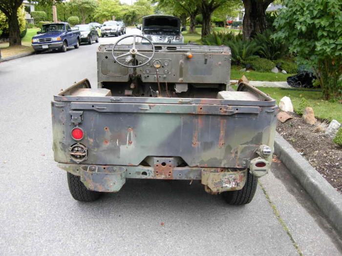 Re the contact for the light bulb, yours appears to be a small washer soldered onto the end of the wire. You can renew it with some fresh solder. You could also replace the wire at the same time, once you get the right stuff. Re the two upper bolbs, the smaller (#623) bulb is for the running lights (should be wire number 21 powering it) while the larger (#1251) bulb is for the brake light (and turn signal if so equipped) and is wire circuit number 22. The modification by the Cdn army was to add a single filament light unit on the right side of the Jeep on a separate bracket. The lamp unit was similar to that found on the railroad crossing arms. However, your best bet is to change the BO tail lamp assy for the same assembly that is on the left side. That would mean you would not have a BO brake light, but if you really wanted one you can install a lamp unit similar to your front BO marker but with a BO brake lense. All these lamp units are available form the various dealers, and are also always on ebay. Note that these early military lights, along with the later first generation of composite lamps (introduced in the 70s) are not SAE approved, and if your vehicle is subject to a safety inspection, may not pass if the inspector knows his stuff. The NOS BO headlamps I have are all black. They are a PAR36 sealed beam unit. You can pry open the crimp and get to the glass, and they will recrimp reasonably well. There are also some large tail lenses available to replace the rear tail lenses. They give much improved visibility for road use. Re removal of those pesky little screws: Good luck. There was a CFTO on that very subject, and they were to be drilled out and replaced with common self tapping screws. Personally I never had much luck removing them, and with a list price of around $30 for the complete lamp unit, it quite frankly was not worth the time spent extracting them. They are the victim of dissimilar metals. I would suggest some silver loctite antisieze when installing them initially. |