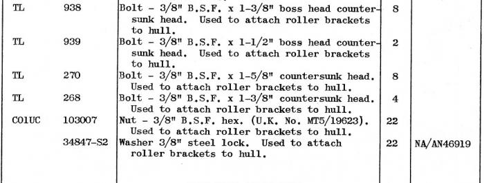 Richard, If you mean the cross tube roller brackets, where they bolt to the hull, then they are all 3/8" BSF of various lengths.