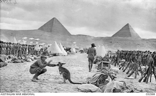 What information is there out there of the animal Regimental Mascots from around the world during all conflicts? I'll start it off with "Shake" the Kangaroo from WWI. This little fellow was taken to Egypt by the Australian 9th and 10th Battalions and was at Mena Camp, near the Pyramids. Many Australian units brought kangaroos and other Australian animals with them to Egypt, and some were given to the Cairo Zoological Gardens when the units went to Gallipoli in April 1915. This image was taken in mid-December 1914 at Mena Camp, beside the Giza Pyramids, 10 miles outside Cairo. The 10th Battalion (South Australian) Infantry of the 3rd Brigade, Australian Imperial Force, which had just arrived in Egypt on His Majesty's Australian Troop "Saldanha", having left Adelaide on October 21 1914. The battalion soon began preparing for the disastrous Australian and New Zealand Army Corps (ANZAC) assault on Gallipoli in the Dardanelles, Turkey, Ottoman Empire. One of the South Australian soldiers took a kangaroo with him to Egypt, as the Regimental Mascot. The kangaroo was given to the Cairo Zoological Gardens when the unit headed to Gallipoli and, in so many cases, certain death. This little fellow was presented to the West Australian Section of the Siege Brigade and taken to England and France. He did not survive very long, being affected by the cold of the 1915-1916 winters seen here wearing a cut down service dress jacket with the Brigade badge on the collar.He/she was always worried by dogs. The photograph bears the inscription 'The Siege Train Regimental Pet'. A nurse seen with the one from the Siege Brigade, 36th Heavy Artillery Brigade, Royal Australian Artillery in 1915. There are many more out there, so over to you. (Thanks to the AWM for the use of these photos.) Regards Rick.