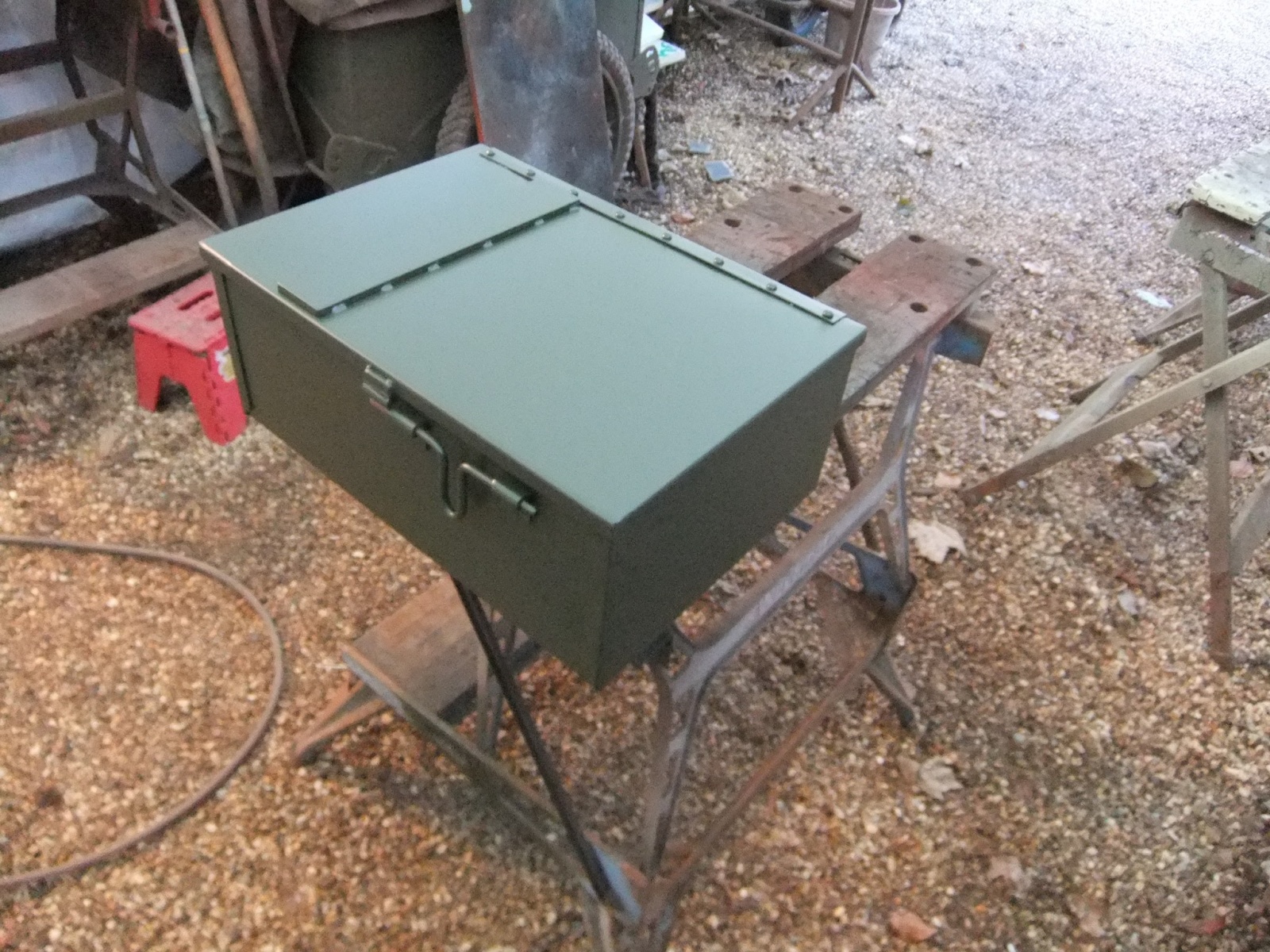 I picked up this Ration box at W&P that Shaun had made, for under the gunners seat of my MK2. I have just to finish it off. So can someone help me with pictures and measurements for the hinge and hasp with width of hinge and rivet spacing etc.