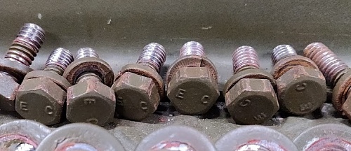 I am currently fixing some electrical problems and have the front end shell off of my C8A and am thinking about grinding/sanding the modern markings off of the bolts. I did some searching but could not find any info on bold/hex head markings. I found a couple of different markings on mine. The obvious modern ones. These will be sanded off Now to the old stuff: 'E C'. This one is common on Jeeps and so Is probably original, or at least period correct. G503 forum thread: 'Bolt head marking research-the story so far in a spreadsheet' The same goes for 'A' and 'C' marked bolts. Now some bolts which I have not seen anywhere: A small '2'. I have a lot of these. Also these. I have two variants. 'W1 over C' and 'W2 over C'. Is there a spreadsheet or something which shows all the different bold head markings that were used on Chevrolet CMPs? I'd like to know a little bit more about these. Last edited by M.Morren; 05-01-20 at 03:53. |