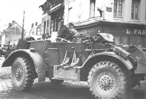 The Corps Commander was Lieutenant-General G.G. Simonds who, I felt, was as fine a Corps Commander as you could find. He was also a spit and polish general and probably felt it was a good image for the men's morale. He had taken a Staghound armoured car and had the turret removed and replaced with a wrap- around windshield and pennants and some white paint striping. The General sitting in this vehicle with a beret and an outriding escort of military police with white gauntlets and white leggings was quite impressive.