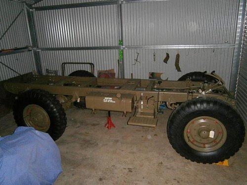 Had initially intended to scrap the chassis, but that was before I took a closer look. Though it has been shortened, it was rather well done and did not show any signs of rust through. The wheels/tyres and axles are off a later model Dodge or similar. They will be going to anyone who can use them, but will stay with the vehicle for now, for convenience of mobility.