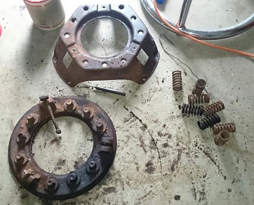 Pulled the pressure plate assembly apart to inspect for any damage. Nothing broken or bent, but I did pull another assembly apart, to use the plate that was best of the two. After a lot of cleaning and a little light sanding of the face, everything came up quite well. Freshened all the bits, and they are now ready to go back together when I get the chance. Won't need to purchase anything. Not a single bolt.