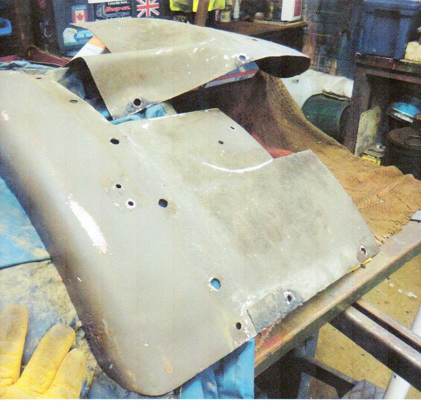 Wednesday was spent cutting the vertical and base pieces of the centre section of the front panel to enable us to get a sporting chance of straightening them up to use as samples for the replacements we pressed last week.