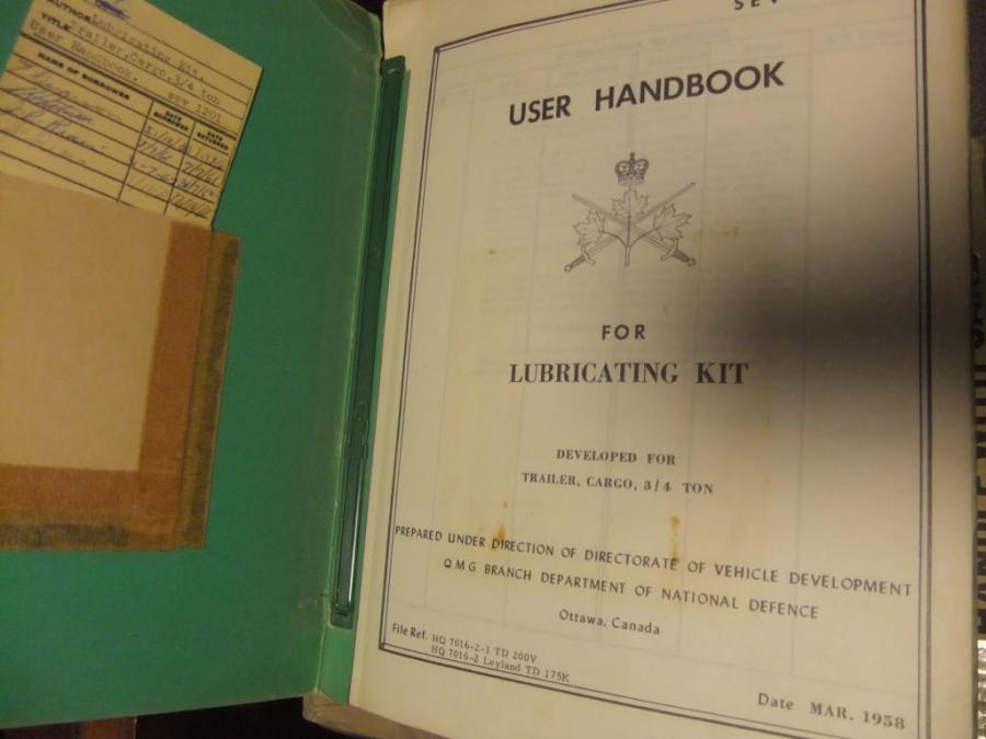 User Handbook for the 3/4 Ton Cargo Trailer Lubricating Kit. Canadian 1958 Issue, 40 pages, pics, part numbers blah blah.. Lots of helpful items, trouble shooting etc. $20.00 plus shipping. Thanks, Harris Last edited by B. Harris; 31-12-15 at 15:35. |