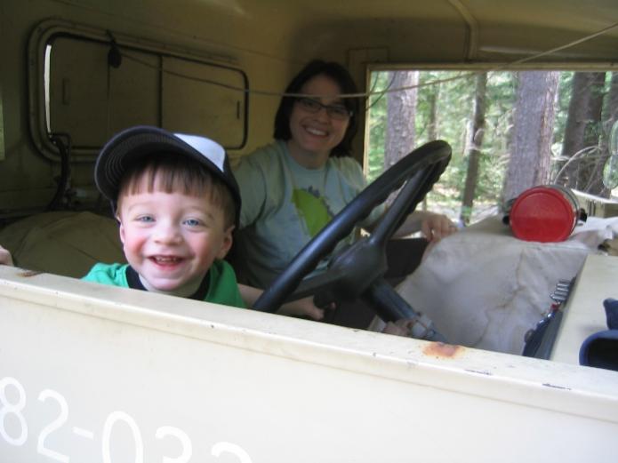I take no credit for the Jeep, wood shop project my brother found at a flea market. He added the steering which works both at the child's end and at the motive power end parent walking and pushing from behind. Was surprising how quickly grandson realized that if he turned the wheel the jeep turned.