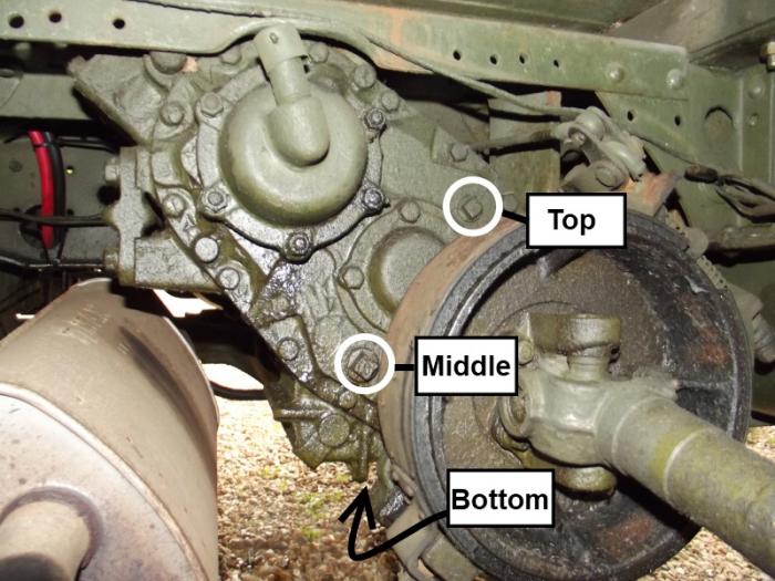 There actually are some Service Bulletins on this issue of what height to fill different transfer cases in different application situations. They all boil down to this the fill to the bottom of the filler hole you have marked Middle in your photo. The Service Information Bulletins contain a wealth of information and updates to what was in the manuals. In general the design of the transfer cases and placement of the fill plugs started off having a much larger capacity than what was needed and because of the additional height of gear lube in the boxes a larger leak problem. In some cases the bulletins even recommend drilling and taping for a new lower filler point. Exceptions to the lower level of gear lube were when the winch was being used extensively. In particular Bulletin B-55 dated May of 1943 Now as to the filler point on the front of the case on the "declutch" this really only needs (in my experience) to be used if the transfer case has been disassembled, hence really drained of all lube. On some transfer cases if you remove that top front plug when the transfer case is hot the lube will actually run out because the filler plug on the back is higher. Obviously it is how much is it leaking, if the transfer case is over filled the leakage gets worse. I consider that things are normal when I can top off the transfer case in the spring and still touch lube with a crocked finger at the end of the summer. Watch out though transfer case and lube maybe hot, like 140F after several hours of road driving. If you are fortune enough to be able to park the truck in the same spot on a hard surface you can gauge how much it is dripping. Tracking the temperature watching the drip marks is my way of keep an eye on things. I've now got records for all three trucks on wheel hubs, transmission, transfer case etc. A quick walk around the truck with an IR gun reading the temps when ever I drive the truck and hour or more and you start to spot stuff. If your truck gets to the point where it is marking its territory with large puddles of oil or lube then you really have to start watching fluid levels very closely. Hope this helps. Cheers Phil