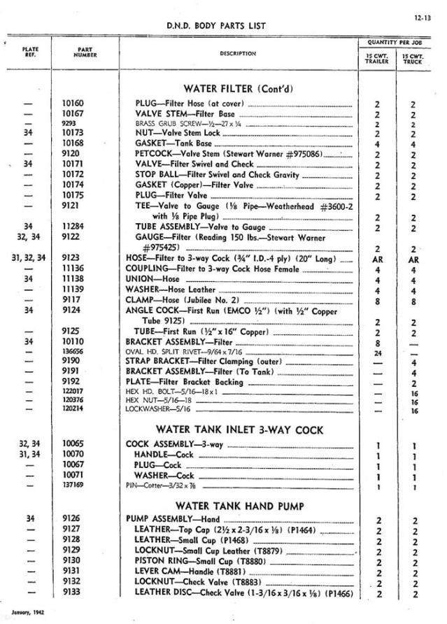 Here are the pertinent pages from the DND parts list for the water truck and water trailer bodies.