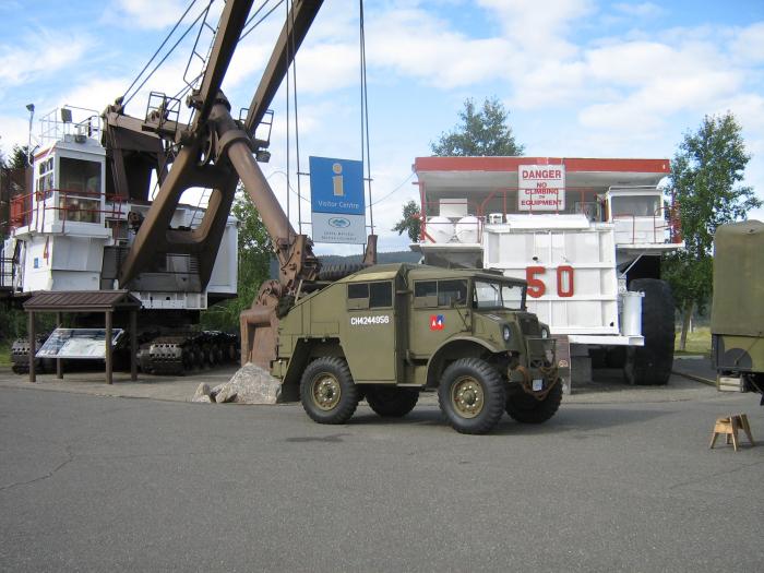 I few shots of the tour. Our tour was extensive, Merritt was our first stop. Then on to Logan Lake, that's where the heavy equipment is. Unfortunately while driving the FAT out of Chase I lost oil pressure and promptly stopped or better stated the engine came to a grinding halt. So the rest of the trip the FAT stayed on the trailer. The last shot is I'm inspecting the bottom end of the 235, #2 rod bearing spun.Still repairable though! I was revving the engine a little high, as I was told by a M135 following at 55 MPH I was leaving trailing behind! So they nickname for the FAT became "Ferrari". So what's the math for 55 MPH with 7.17:1 diffs and 11.00X20 tires? What was the engine RPM?