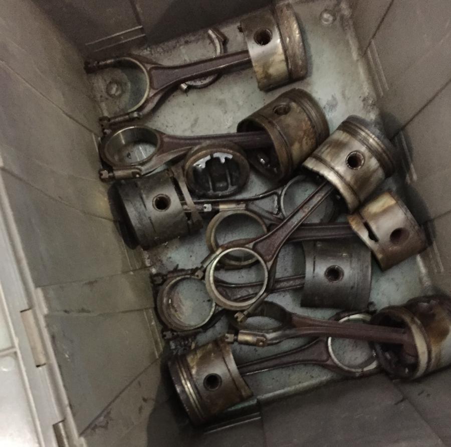 Don't forget to get the bare block put in an acid bath to clean out all the galleries. There are both welsh plugs and gallery plugs to be removed from the oil and water galleries before that is done.