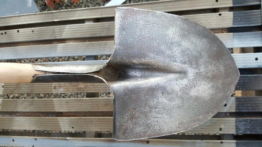 Hmmm, it's a bit, sort of, er.....lolly like. Maybe the color will grow on me, cause I don't like it just yet. Fading light could have made things look a tad more orange too. Looks like somebody stuck a shovel blade on a nice long stick of Blackpool rock! Can anyone identify this makers mark?