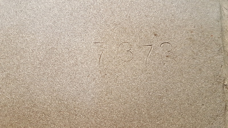 After we looked closely at the front armour we can see that a grinder or similar has been used in a number of places on the front armour; the middle panel where that other serial number would be, and the top panel. You can actually see some of the dips in the surface from the grinding, and it appears that other number has been ground away. The lower panel where the Ordnance Numbers are shows no signs of any grinding.