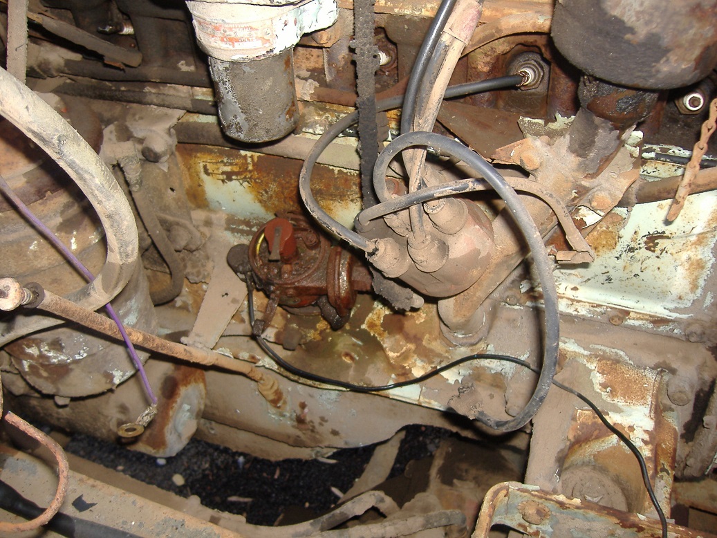 Some photos of the engine bay, or what remains of it. There is enough bits to make it possible to getting it going.