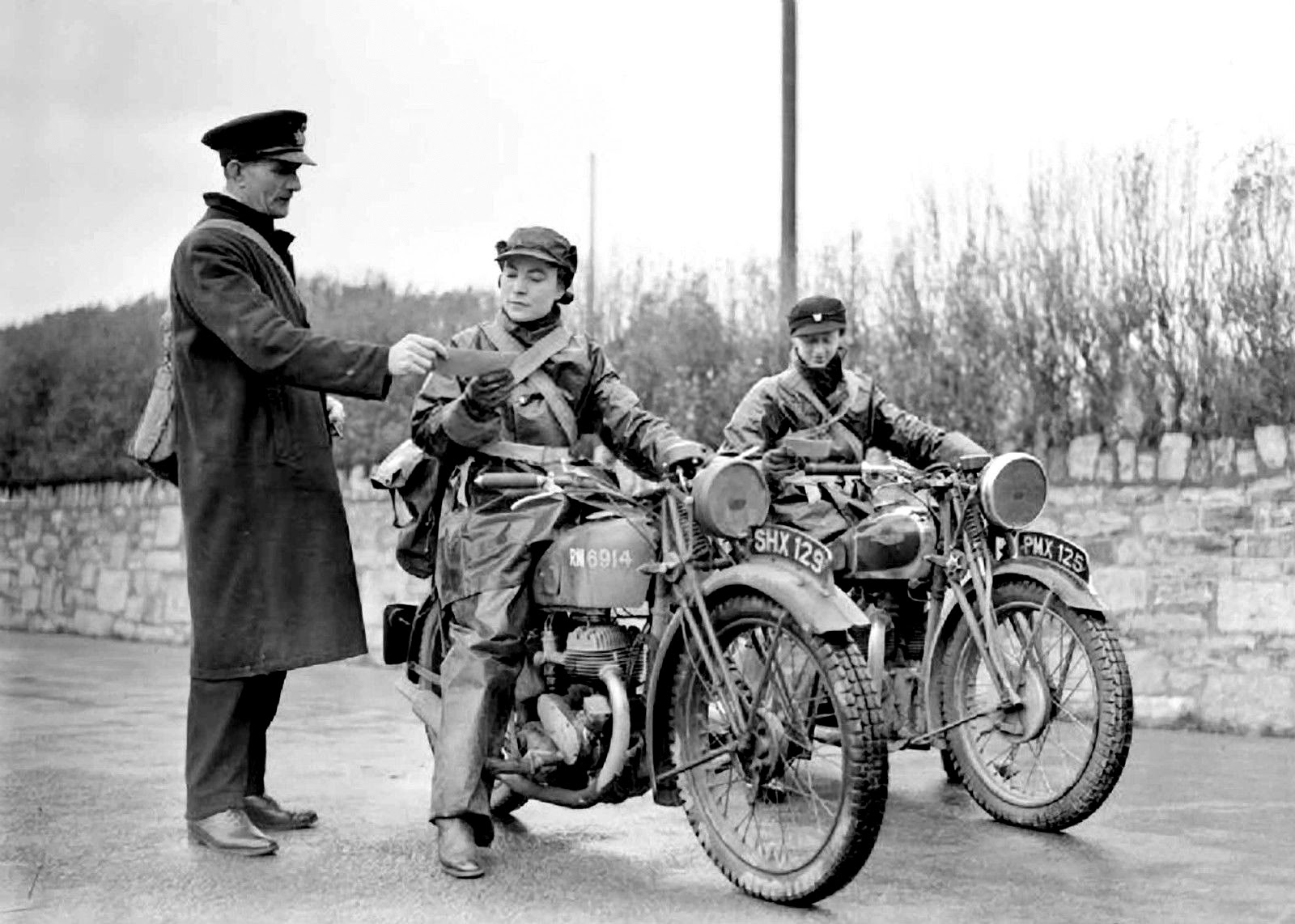 Sure, some of you are looking at the tins, other for some strange reason at the women. But for me it's the battledress and markings on the bikes. The formation flash seems to be SHAEF Supreme Headquarters Allied Expeditionary Force with trade or other badges below. British obviously otherwise the bike number would be "CC". If it is the supreme headquarters you have to wonder just how all the cute DR riders happened to be attached there.