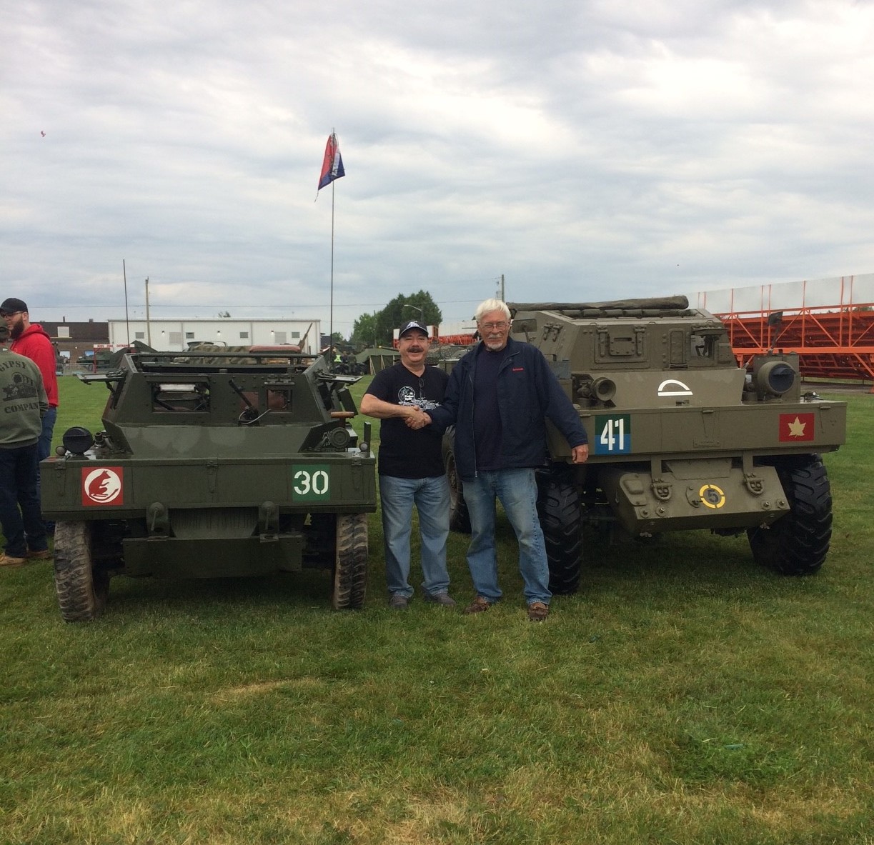 Spent the weekend at the Aquino show on the grounds of the Ontario Regiment Museum. This event continues to grow and there is always something new to see. I was able to meet Charles Abdouch who along with his wife Dora donated a 1944 Daimler Dingo to the museum, and drove the Lynx over to meet it's British inspiration. The highlight of my weekend was to meet Michael Miller and the Team from the CWM who restored their Ram Kangaroo and participated in the daily events. The sights and sounds of the Wright radial engine has to seen and heard to be truly appreciated. Peter |
