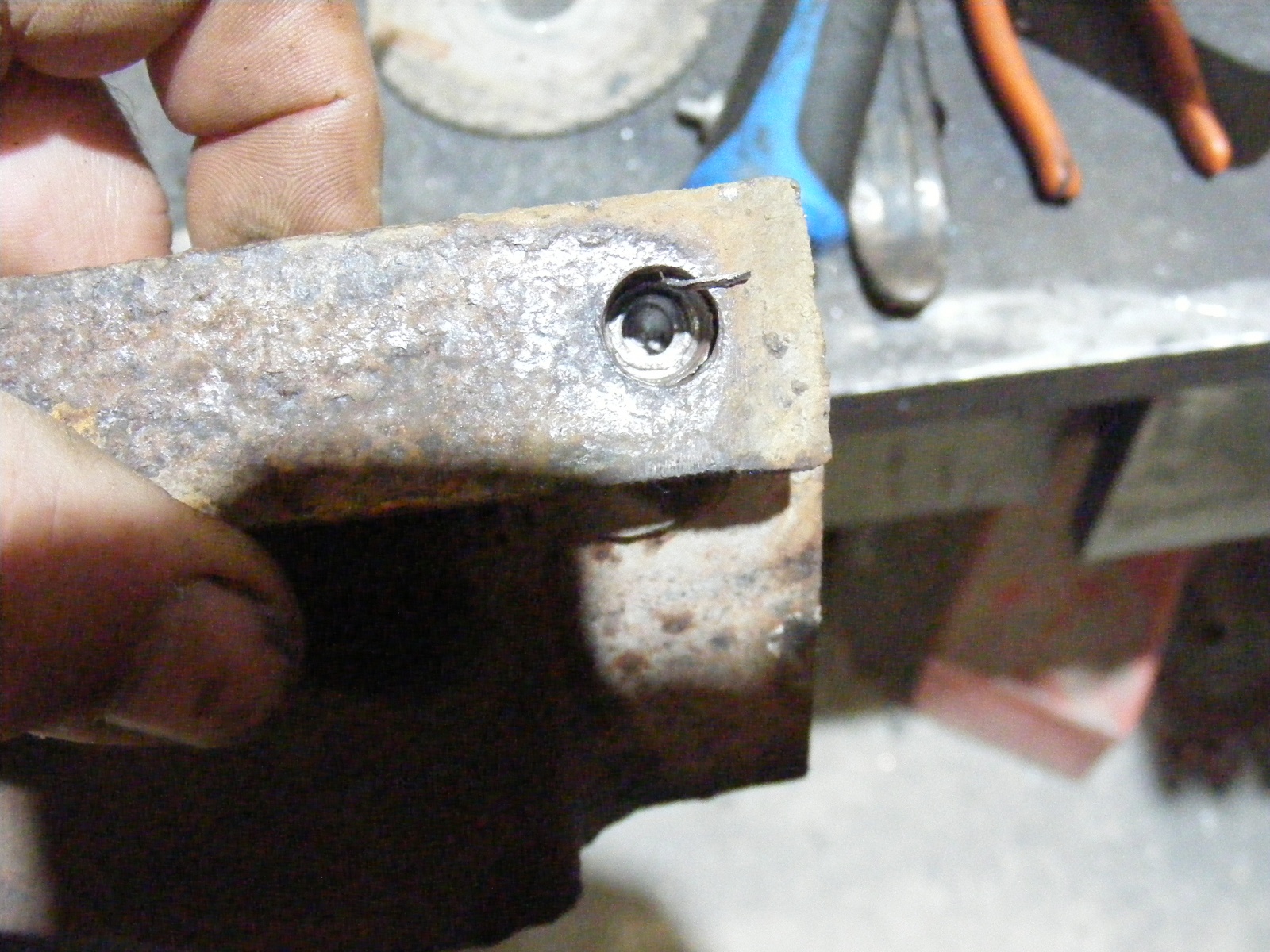There is also a shot of one of the body mount brackets, showing where some worker was having a bad day. He was nowhere near on center. I will replace that bracket with one from the other frame.
