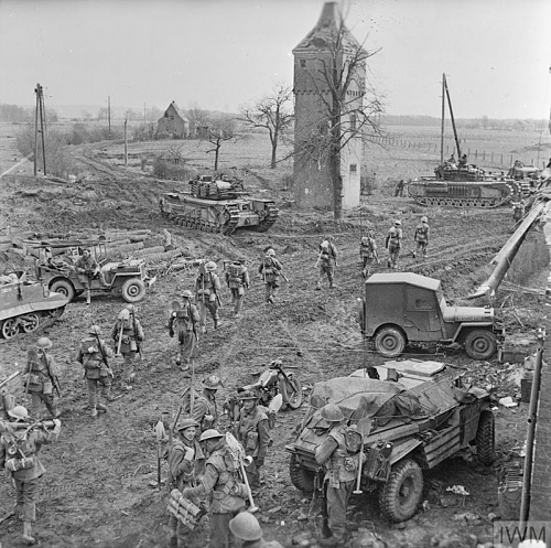 If I identintified this correctly, this T16 belonged to The Highland Light Infantry of Canada (white 67 on brown) of the 3rd Canadian Infantry Division (gold maple leaf on French-grey) - ref. https://canadiansoldiers.com/vehicle...antryunits.htm Source: J.P. Hogeweg, via Het Utrechts Archief - https://hetutrechtsarchief.nl/beeld/...513DC7A1FB114E