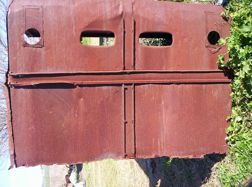 The second long chev was discovered to be also the remains of a wireless truck, the cab chopped off and the chassis cut and extended to a long truck. The drivers section of floor and nose were in reasonable condition as was the bottom of the cab rear. But the top of the cab had been beaten into a rounded shape. It had a hatch door, 2 seats, 2 windscreens, an engine cover and the remains of the dash. The only pieces of dash being useful, will be the ignition switch and the little labels for three switches. It has a “START” button