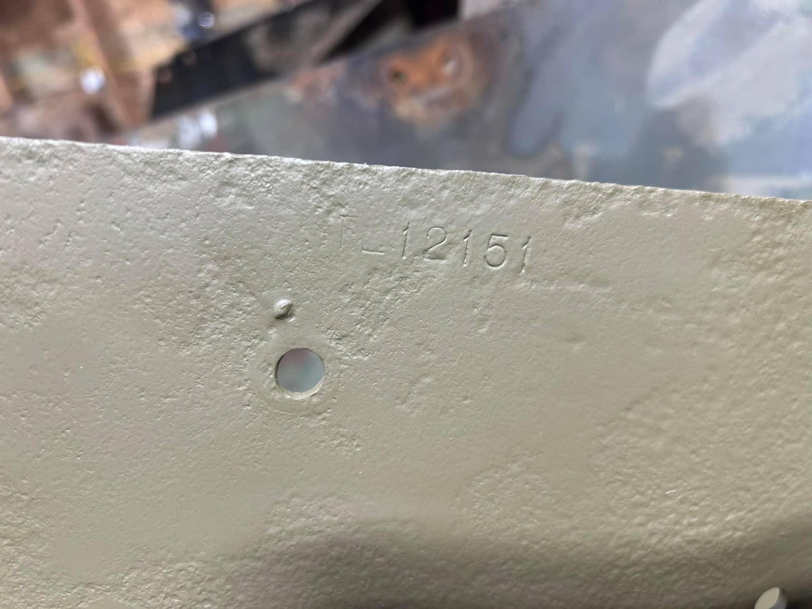 The turret gunners foot rest getting the full rebuild. It was in really great shape and just required a strip down, some minor welding and a repaint. The part was held in place by 4 rounded head slot screws that had seen better days. Access to the nuts was blocked by a frame cross member. I ended up using a Zip disk to cut off the heads of the screws. The downside to this was cutting a bit into the steel base just below the screw heads. So once the part was cleaned up I welded up the cut marks and ground them back down to make the mounting blocks flat again. As for cleaning up the part, it was given a quick needle scaler pass and then dropped into the citric acid bath. After 4 days I pulled it out and power washed it off. Pretty much all the left over paint came off and I had some pretty nice clean metal. It was given a spray of Zep degreaser, hosed off then finally sprayed with POR Metal Prep. Finally for painting I brushed on the POR15 and once slightly tacky it was over sprayed with the white paint.