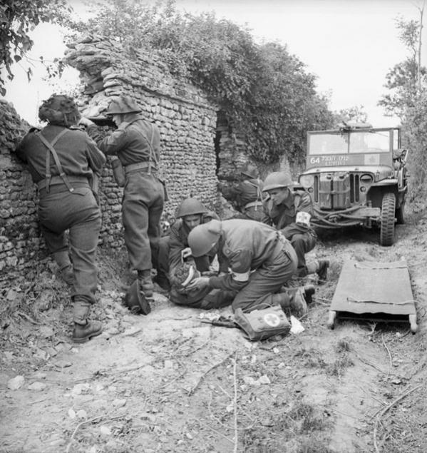 Great picture of the stretcher jeep! This is the first photo I have seen where it shows the left side of a jeep ambulance.I did come across a photo of 2 wounded Canadian soldiers sitting in the back of a stretcher jeep and this answered a question I had about the position of where the red cross was painted on the left side of a jeep ambulance.The shovel & axe were in the way of placing it in the same position as on the right hand side,just in front of the rear wheel well but the photo with the wounded soldiers shows the red cross painted behind the left wheel well along the top and now your photo confirms for me that is the correct spot.I also noticed in your photo that the 2 ammo boxes bolted to the front fenders have the unit & formation signs painted on the front of the boxes.The right box has the 75 painted on the front of it and on the left box has the formation sign on the front.It also has a red cross painted on the windshield canvas cover.Something different than the rest of the stretcher jeeps is the blackout light in the right headlight and the bridge plate covering the left headlight hole.Interesting!Thanks for sharing the photo. Clive, I thought the same thing for the tire pressures,although not standard markings.I do remember seeing a photo somewhere of a jeep with wounded towing a trailer but was some time ago.I would like to find it again cause it has me curious as to what unit it belonged to.