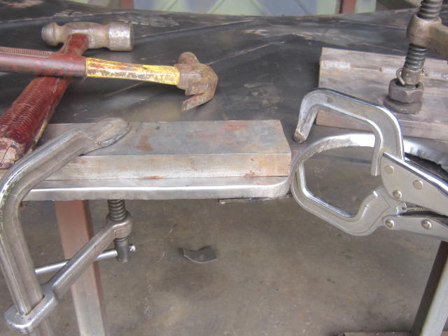 I clamped the panel where I thought it was correct and slowly peened the sheet over the edge until I achieved a right angle the entire length which strengthened the bottom considerably.