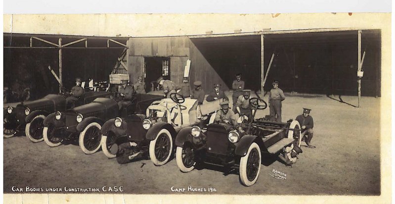 I am attaching some photos of the MT section in Camp Hughes, and their conversions. It would appear they liked to use model T cab and chassis. There are some vehicles in the background, including one ambulance that seems to have the hood of a Cadillac.
