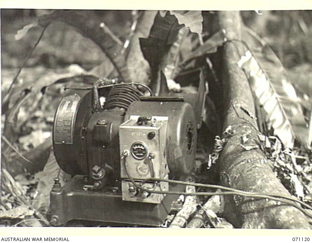 KILIGIA, NEW GUINEA, 1944-03-12. THE "JOHNSON CHORE HORSE" 12 VOLT 300 WATT BATTERY CHARGING SET, VIEWED FROM A CLOSE DISTANCE.