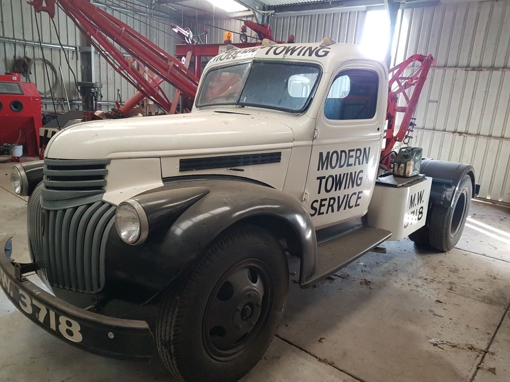 http://www.ebay.com.au/itm/1942-Chev...8AAOSwvKtY-wLk 1942 RHD with US cab. Ex Military? Seller states vehicle is fitted with an "Apex" crane. |
