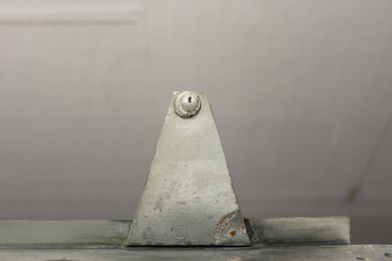 If you look at the upper panel edge in this photo, you can see a set of four angled gouges in it, running from the right side to directly over the Eye Screw located at the upper right corner of the Sender Heaters decal.