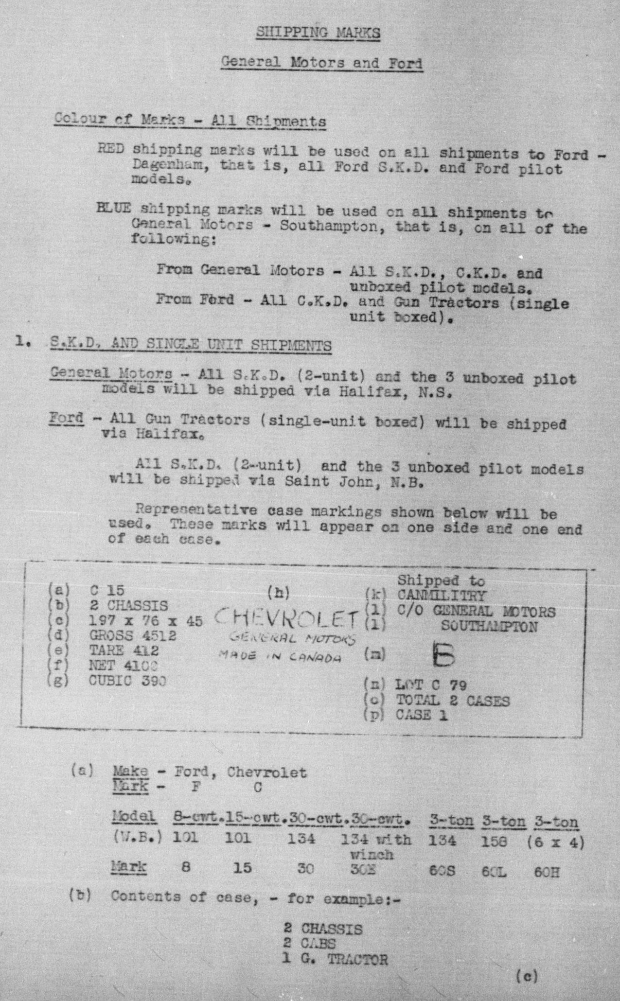 In the case of e.g. the Indian deliveries, Ford and Chevrolet both had local assembly plants or contractors, so they only had to send over chassis, engines, gearboxes, axles, cowl parts, etc. The local assembly plant(s) sourced bodywork, tyres, cab parts etc. to complete the vehicle.