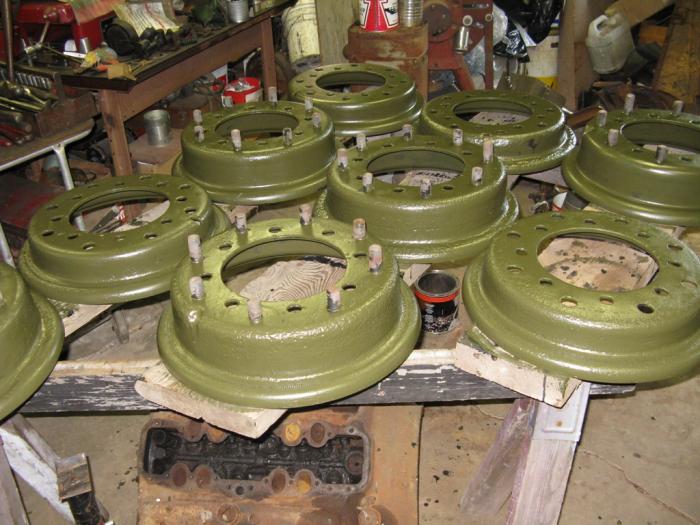 It is almost a year since the F15A project was started. There are now 2 1/2 F15's in various stages of disassembly. The last truck that was acquired (in April this year) proved to be the best subject to restore. A lot of component rebuilds / restorations have been completed. The transmission has been redone, the steering box, and several more items. At the moment the brakes are being rebuilt, and the wheels readied for tires.