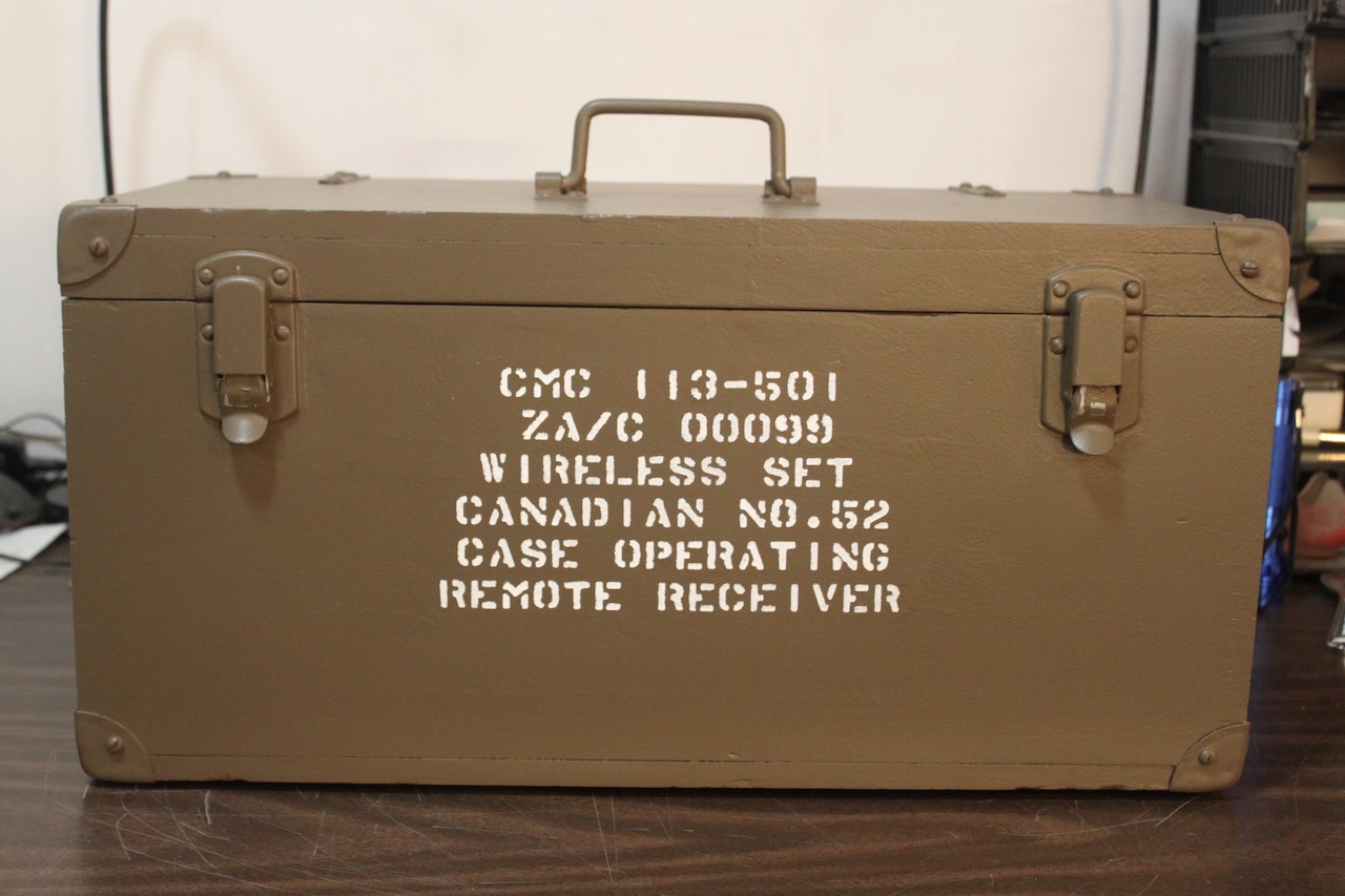 I was able to touch up the handful of fat characters in the stencilling this morning with a fine tip paint brush to finally complete the paint work on the three boxes/cases which were issued with the Wireless Set Canadian No. 52.