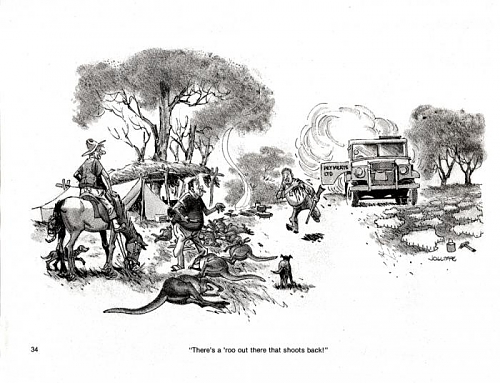 and it may be some time down the track before I get "active" again... Things are hectic around here at the moment! Meanwhile, here is a cartoon that my young fella found in one of my old books. From one of the "Jolliffe's Outback" series of books. Look for them in book shops, they are rare mix of wry humour, Aussie folk lore, our bush history and outstanding art!