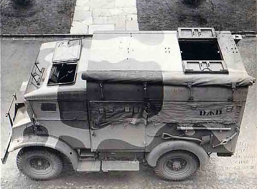 From studying photos I have found the war time crew doors were "suicide" and post war fitted the other way around. also the Bren gun mounts in the rear section are fitted outside post war. The mount is the same as fitted to Bren Gun Carriers. Washed the truck and photographed everything. |