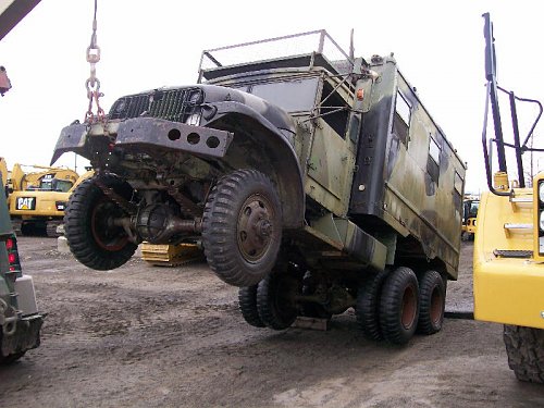 We think we solved the "Attach Stuck White Knight Here" stenciled on the back with the possibility that this truck pulled the "White Knight" ambulance out of the mud....maybe. This one also came with tailgate and tie-down mods. Being a civilian has its disadvantages so I've never seen what was on the back but it was clearly modified to carry something. Still hunting for pictures of duties the M211 had while it was in service. I've spent some time checking out images of "Canadian WW11 junkyards", "Canadian WW11 dumps", "Canadian WW11 wreckers"....and so on. Finding a Diamond T with a gun ring is a tough find. There is one near the bottom of this page but not sure it's the right model. http://usautoindustryworldwartwo.com/diamondt.htm Here is More, the M211. |