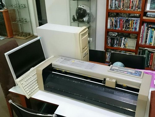 Bought a Graphtec vinyl sign cutter today. No more paying people to do my stencils and vehicle signage. It's not new, in fact it is nearly two decades old, but is a good quality machine. Would have been for professional use in the days of WIN98! Came with the computer system it runs on, and all the software disks (3.5"), as well as the manuals and extra font libraries.