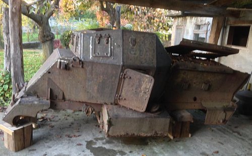 The machine was cut in half when it was "demilitarized" and is missing both fuel tanks and the armoured sponsons that contain them. Well weathered and rusty, but other than that it is relatively intact. I wish to thank all the members of MLU who encouraged my dream to find a CMP project and Giorgio for making it happen. Peter Duggan, Cherry Valley, ON photo - Copy (2).jpg |
