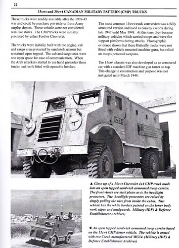 That's right, the reason these armored vehicles are referred to as "Sandwich" trucks is due to their type of armor. Shortages of proper military-grade metal armor neccesated the use of alternating layers of lower-grade metal/plywood armor. Sand, cement, rubber and even glass were also used. Many types of truck chassis were used, including 15-, 30-, and 60-cwt CMPs. See the book Military Briefs 6: Israeli Improvised Armoured Vehicles & Jeeps: 1947-1949 for more detail.